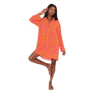 Show Me Your Mumu Beachclub Button Down Fuchsia Shells Pebble. With a breezy, loose fit, front buttons, and a longer length for just the right amount of coverage, it’s the perfect throw on over your fave swimsuit. Just grab your flip-flops and tote, and head straight to the beach club!