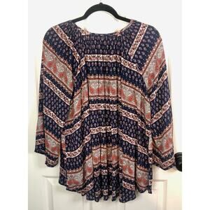 Show Me Your Mumu Bell Sleeve Paisley Boho Button Down Top Blue Red Size XS