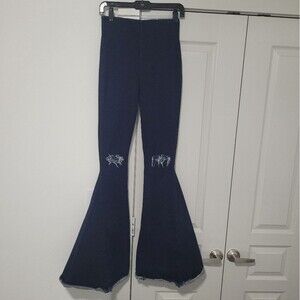 Elevate your style with these high-waisted flare jeans. The deep blue color adds a classic touch to any outfit. Perfect for a chic, retro look.