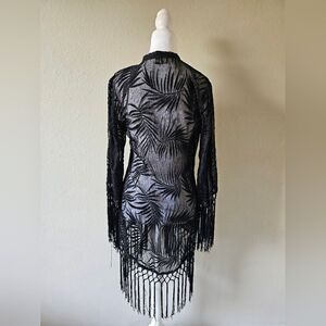 Show Me Your Mumu Black Leaf Print Kimono With Fringe Small