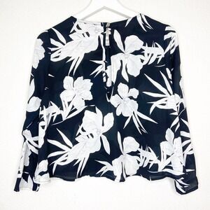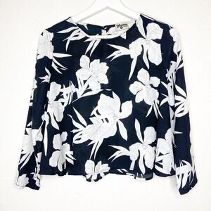 Gorgeous blouse by Show Me your MuMu. Floral print in oversized blooms of black and white. Cropped length. Sleeves are 3/4 length or slightly longer. Oversized keyhole opening in back with a button tab closure at back of neck. Very cool! All measurements are approximate, taken flat and closed.