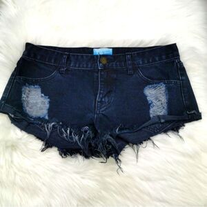Show Me Your Mumu Blue Dark Wash Cut Off Distressed Jean Shorts Size 28
