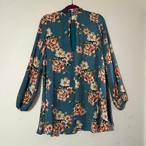 Mumu Dress, Floral Mini Dress, Boho Dress, Bohemian Style, Mock Neck Dress, Keyhole Dress, Long Sleeve Dress, Blue Dress, Lined Dress, Casual Dress, Brunch Outfit, Cottagecore, Resort Wear, Vacation Dress, Feminine Style, Size Medium Dress