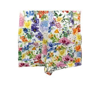 Show Me Your MuMu Reno Romper Floral Denim Front Zipper V Neck with 2 side Pockets and 2 back pockets. Zips all the way down, sleeveless and collared at the top. Ivory denim with floral colors of blue, pink and yellow, purple, and orange. Comfortable wear in 100% Cotton. Pair with your favorite cowboy boots for a western style.