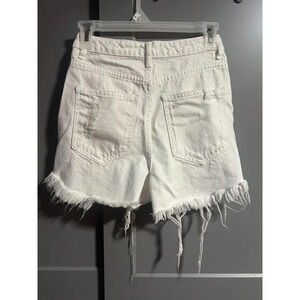 Show Me Your Mumu Blue Womens Wyoming High Waisted Shorts Fray Hem White Size 24