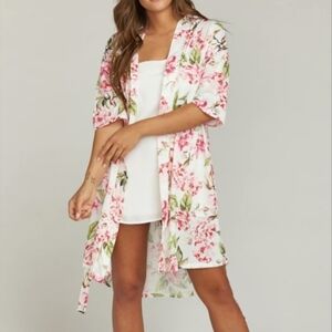Show Me Your Mumu Brie Kimono Robe in White and Pink Floral OS