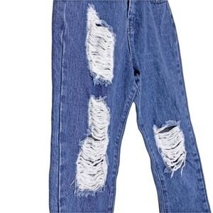These Show Me Your Mumu Brooklyn High Waist jeans are in excellent condition. Size 26. Sapphire Blue colorway. 100% cotton. Zip and button closure. 4 pockets. Distressed/destroyed details. Raw, split ankle-length hem.