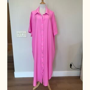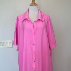 Show Me Your Mumu Buoy Button Down Dress Hot Pink Crinkle Flow S/S 3X Plus NWT