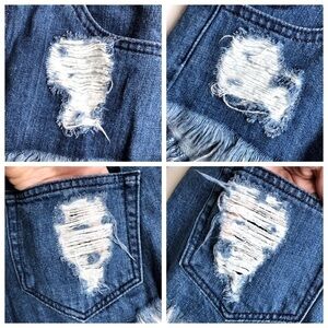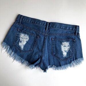 Show Me Your Mumu Cabo Cut Off Denim Shorts in blue denim drench wash. Distressed detailing. Belt loops. Frayed hem. Four pocket styling. Zip fly with button closure. 100% Cotton. Worn once and in excellent like new condition with no visible signs of wear. Size tag cut out but they are a size 26. Approx. 2.5” inseam, 7.5” front rise, 10.5” back rise.