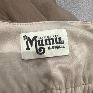 Crafted for versatility, the dress is suitable for all seasons, from the freshness of spring to the festive winter evenings. The ruffle accents add a playful flair, while the lined interior ensures comfort. With its pullover closure and adjustable features, this Show Me Your MuMu dress promises an exquisite fit for the stylish, modern woman.
