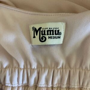 Light pink flowy boho maxi dress. Adjustable straps. Straps have just a couple barely noticeable marks on them from the metal clasps, as shown. Can be worn two ways: spaghetti straps or cold shoulder. Lined. Great bridesmaid dress or wedding guest dress.