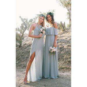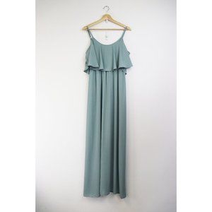 Show Me Your Mumu Caitlin Ruffle Maxi Dress in Silver Sage Crisp. Size Medium.