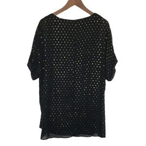 Tags: relaxed lagenlook oversized designer day night out evening dressy fancy sparkle bling date shirt blouse polka dot gold metallic glitter shiny boho bohemian holiday party event christmas new years NWT