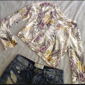 Show Me Your Mumu Cher Tropical Floral Long Sleeve Lace Crop Top New NWOT Medium