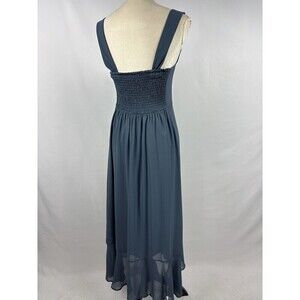 Show Me Your Mumu Clair Mid Dress Blue Grey Medium Smocked Back Dquare Neck Slit