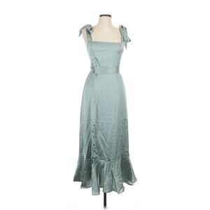 Show Me Your Mumu Claire Midi Dress in Silver Sage Luxe Satin L NWT