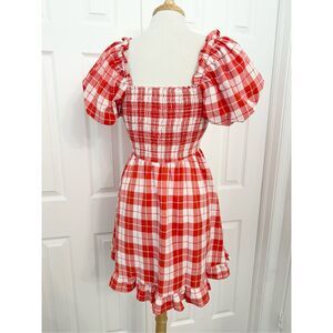 Show Me Your Mumu Colvin Red White Gingham Mini Dress Smocked Large