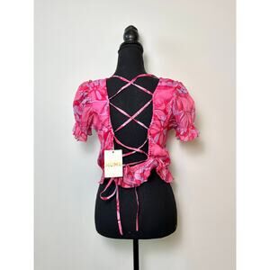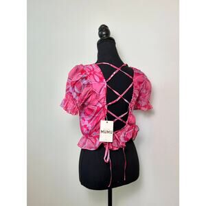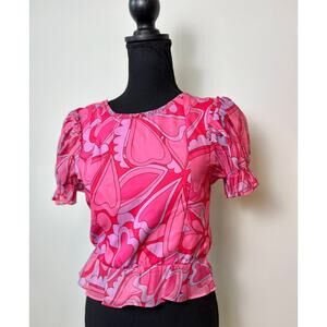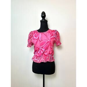 Show Me Your Mumu Daiquiri Peplum Top in Candy Heart Organza Pink Medium Lined