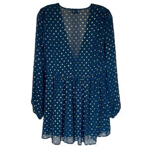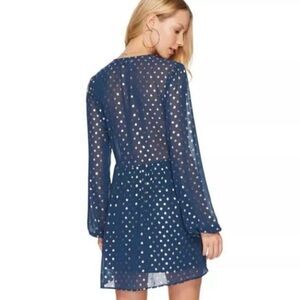 Show Me Your Mumu Dakota blue and gold stardust dot long sleeve mini dress.