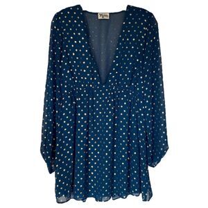 Show Me Your Mumu Dakota Blue & Gold Stardust Dot Mini Dress Size Extra Small