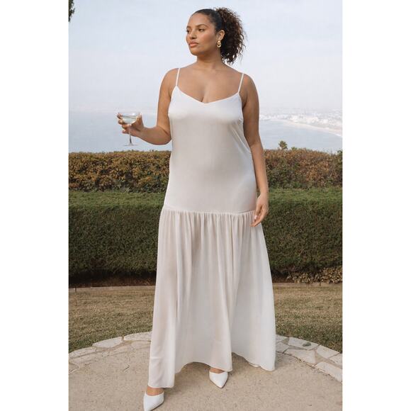 Show Me Your Mumu Dalia Maxi Dress in Ivory Luxe Satin S