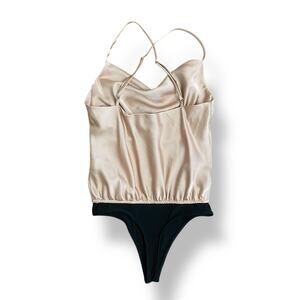Show Me Your Mumu Diane Bodysuit In Rose Gold Luxe Satin Womens Size XS