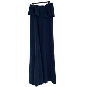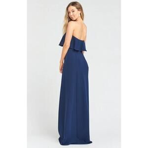 Show Me Your Mumu Dress Women's Size Large Crepe Monaco Ruffle Navy Stretch Lined Formal Wedding Bridesmaid Gown