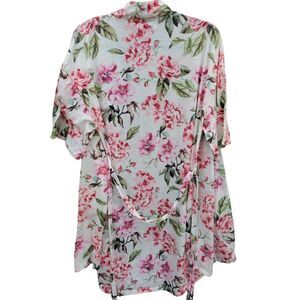 Show Me Your Mumu Duster One Size Womens Pink Floral Short Sleeve Belted Open