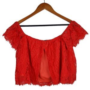 Show Me Your Mumu Ella Spring Fling Blood Orange Lace Off Shoulder Top S