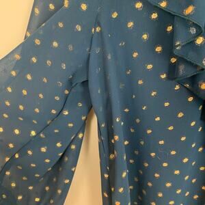 Show Me Your Mumu Elton Ruffled Lace Up Blouse Teal Gold Polka Dot M Medium