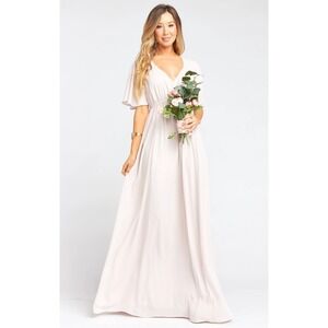 The Emily Empire Maxi is an elegant silhouette with a flirty sleeve and an elastic empire band just below the bust to compliment all shapes and sizes as well as a baby bump! Chiffon - 100% Polyester Lined to the ground No slits Elastic empire waist Keyhole with button closure Bra friendly Maternity friendly Colors may photograph differently under studio lighting BS9-0222N SR46Size: Womens M Dress was purchased from SMYM through liquidation and is authentic, unaltered, unworn, and new (with or without tags) unless otherwise indicated above. May arrive wrinkled and need steaming prior to event. Pet free and smoke free environment. Shipped daily Monday-Saturday from Washington State. Keywords: Wedding, Bride, Bridesmaid, Bridal, Prom, Formal