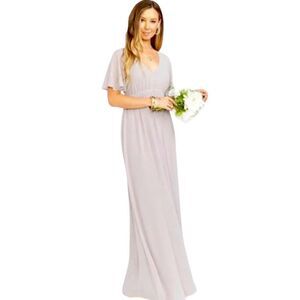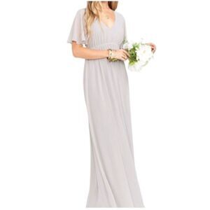 Show Me Your Mumu Emily Empire Maxi Dress in Dove Gray Chiffon. Size 1X. Perfect for wedding guests, bridesmaids, summer cruises, pictures or any event where you want to be stunning! Brand new still in manufacturers packaging.
