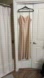 This elegant long champagne dress is perfect for a bridesmaid dress or formal occasion. It’s been freshly dry cleaned. There are two subtle spots on the skirt of the dress. I don’t think they are that noticeable, but be sure to look at the photo of the spots before you buy.