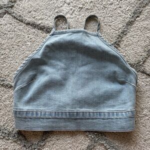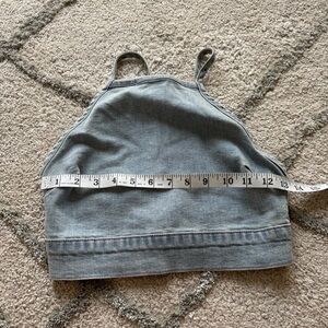 Show Me Your Mumu Fawcett Denim jean Crop Top open back high square neck small