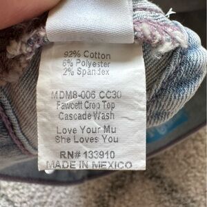 Show Me Your Mumu Fawcett Denim jean Crop Top open back with button closure