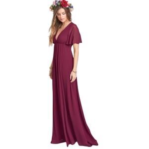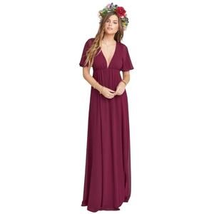 Show Me Your Mumu Faye Flutter Maxi Dress in Merlot Chiffon Bridesmaid NWT