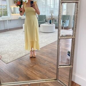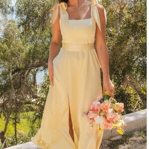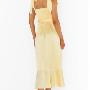 Show Me Your Mumu Garden Midi in Pale Yellow Luxe Satin