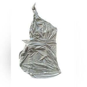 Show Me Your Mumu Genevieve One-Shoulder Wrap Mini Dress Silver Size XS