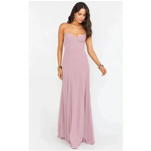 The Godshaw Goddess Gown lives up to her name with a lace up bodice punctuated with a skirt fitted to flatter but with a sweep to turn heads. A classic silhouette with a Mumu modern flare.