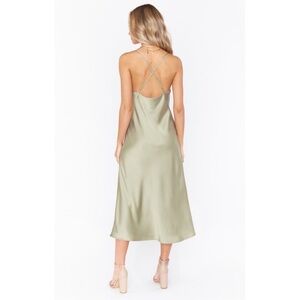 Show Me Your Mumu Green Verona Cowl Satin Midi Dress size Small