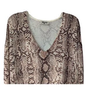 Show Me Your Mumu brown and cream Hug Me Sweater Python Knit; v-neckline; long sleeves; 100% polyester.