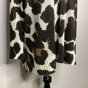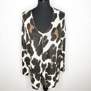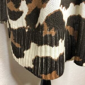 Show Me Your Mumu Hug Me Sweater in Wildcat Knit. Pullover style with v neckline. Cream black and brown animal print. Ribbed hemline and sleeve cuffs. Side slit hemline. Oversized fit. Size Extra Small XS. Excellent preowned condition. Minor wash wear.