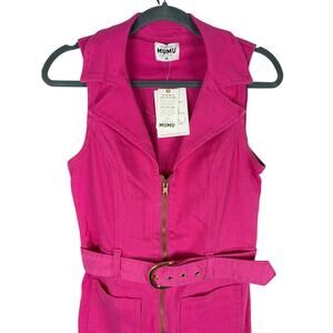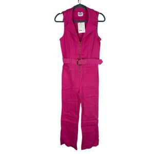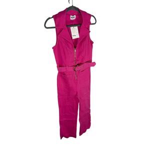 Playful and bold, the Show Me Your Mumu Jacksonville Cropped Denim Jumpsuit in hot pink features a belted waist and flattering cropped leg. Perfect for festivals, casual outings, or statement everyday style, this jumpsuit brings fun energy to any look.