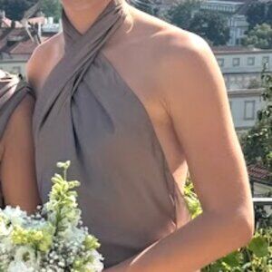 Show Me Your Mumu Jasmine Halter Maxi Bridesmaid Dress XXS Dune Luxe Satin
