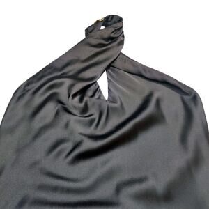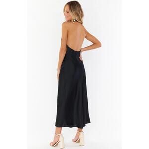 Show Me Your Mumu Jasmine Halter Midi Bias Slip Dress Black Luxe Satin Medium