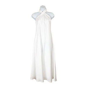 Show Me Your Mumu Jasmine Halter Midi Dress Ivory Luxe Satin S