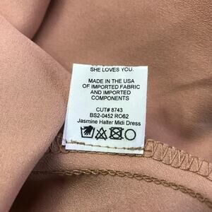 Show Me Your Mumu Jasmine Midi Dress L Crossover Halter Neck Open Back Satin $178 Condition: Discolored streaks at back and right armpit area. 21" pit to pit 38" waist 44" hips 61" length 090223-UU1-31-SJS-MS