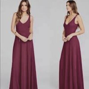 Show Me Your Mumu Jenn Maxi Dress Merlot Fitted Bodice Deep Neckline
