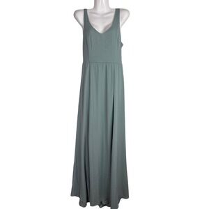 Show Me Your Mumu Jenn Maxi Dress in Silver Sage Crisp Blue V Neck| XL | NWT