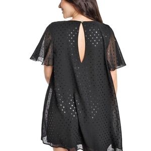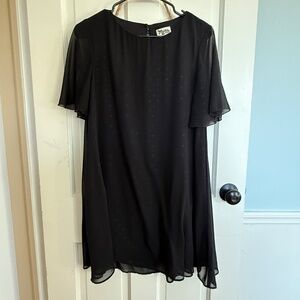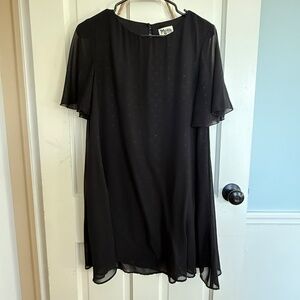 Excellent used condition Jenner dress by SMYM. Sheer black overlay with solid dots over a solid underneath layer. Very flowy and comfortable. No flaws - like new. 33" length.
